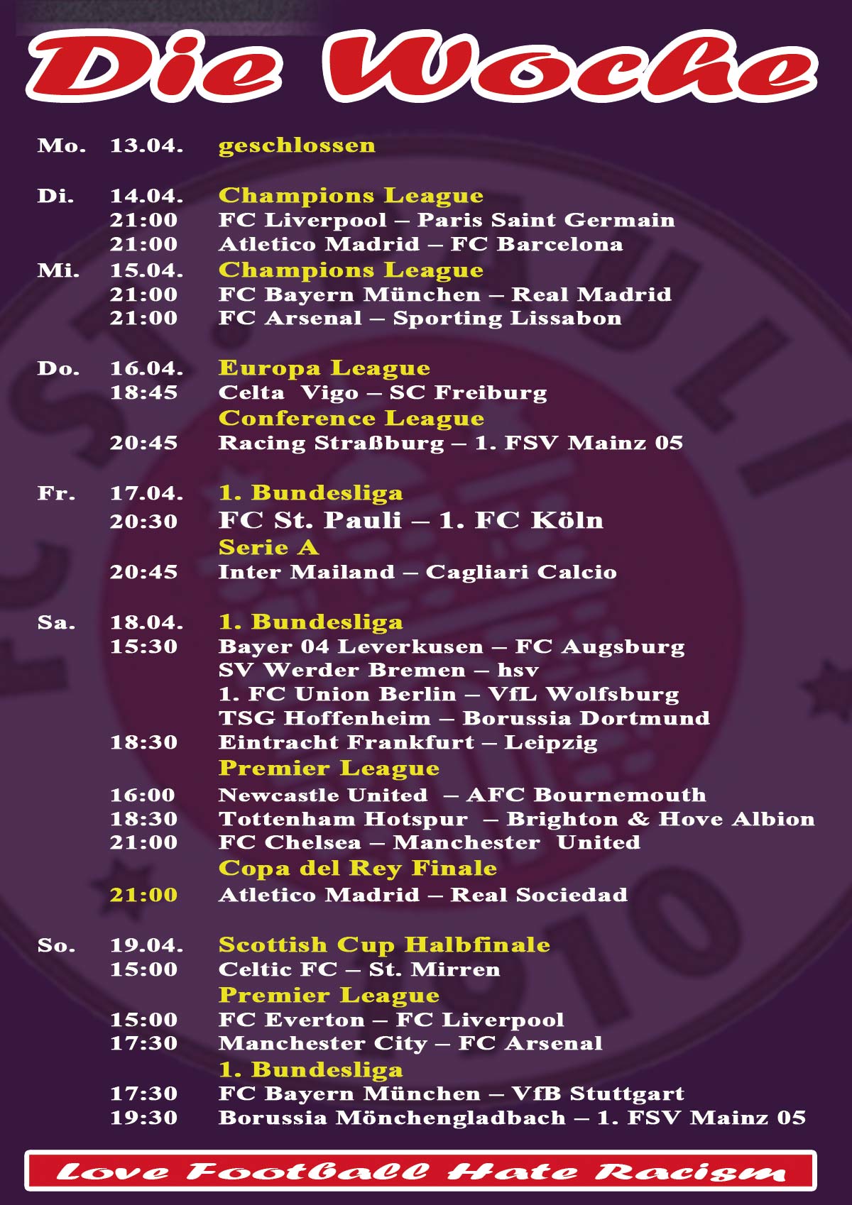 Öffnungszeiten: Mo. -Fr. ab 19:00 Uhr